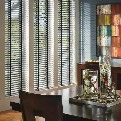 At Superior Blinds, we offer a curated selection of Modern Precious Metals® blinds in a variety of colors, finishes, and slat sizes to match your style. Choose from matte, metallic, or pearlescent finishes, and explore options like de-Light™ for improved privacy and reduced light gaps. Our team will help you customize your blinds with cordless or motorized lift systems for a clean, modern look that fits your space perfectly.