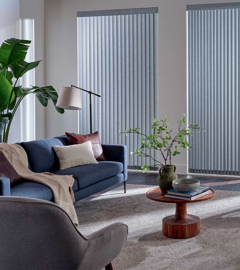 Somner® Custom Vertical Blinds provide flexible light control and a broad range of style options for any space. Ideal for large windows and sliding glass doors, they come in materials like fabric, vinyl, and aluminum. Whether you prefer bold patterns, subtle tones, or modern metallics, Somner® blinds offer a stylish solution with smooth and dependable performance.