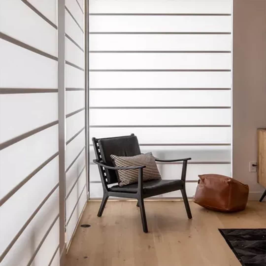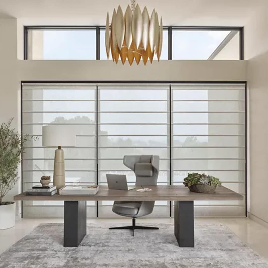 Alustra® Architectural Roller Shades offer a sophisticated blend of modern design and high-end materials. Made with exclusive Alustra® fabrics, they stand out with rich textures, stylish colors, and upscale finishes. Their advanced dual-layered roller system delivers sharp, clean lines while improving light diffusion and privacy, making them a sleek and functional choice for contemporary interiors.
