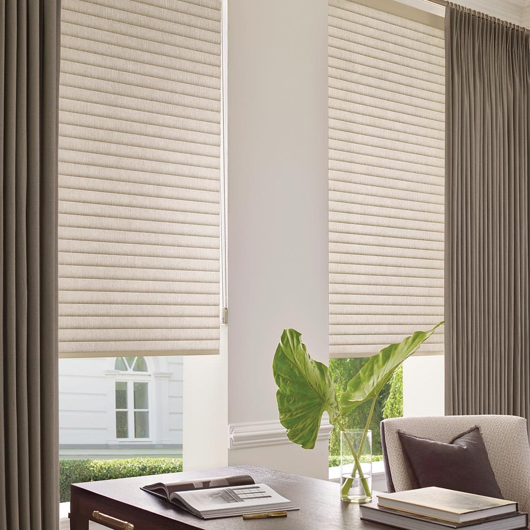 Sonnette® Cellular Roller Shades combine the clean look of a roller shade with the energy-saving benefits of a cellular structure. The gently curved, dual-layered fabric softens natural light while adding insulation to your windows for improved comfort throughout the year. With their modern design and practical function, Sonnette® shades are a smart choice for homeowners looking for both style and efficiency.
